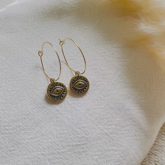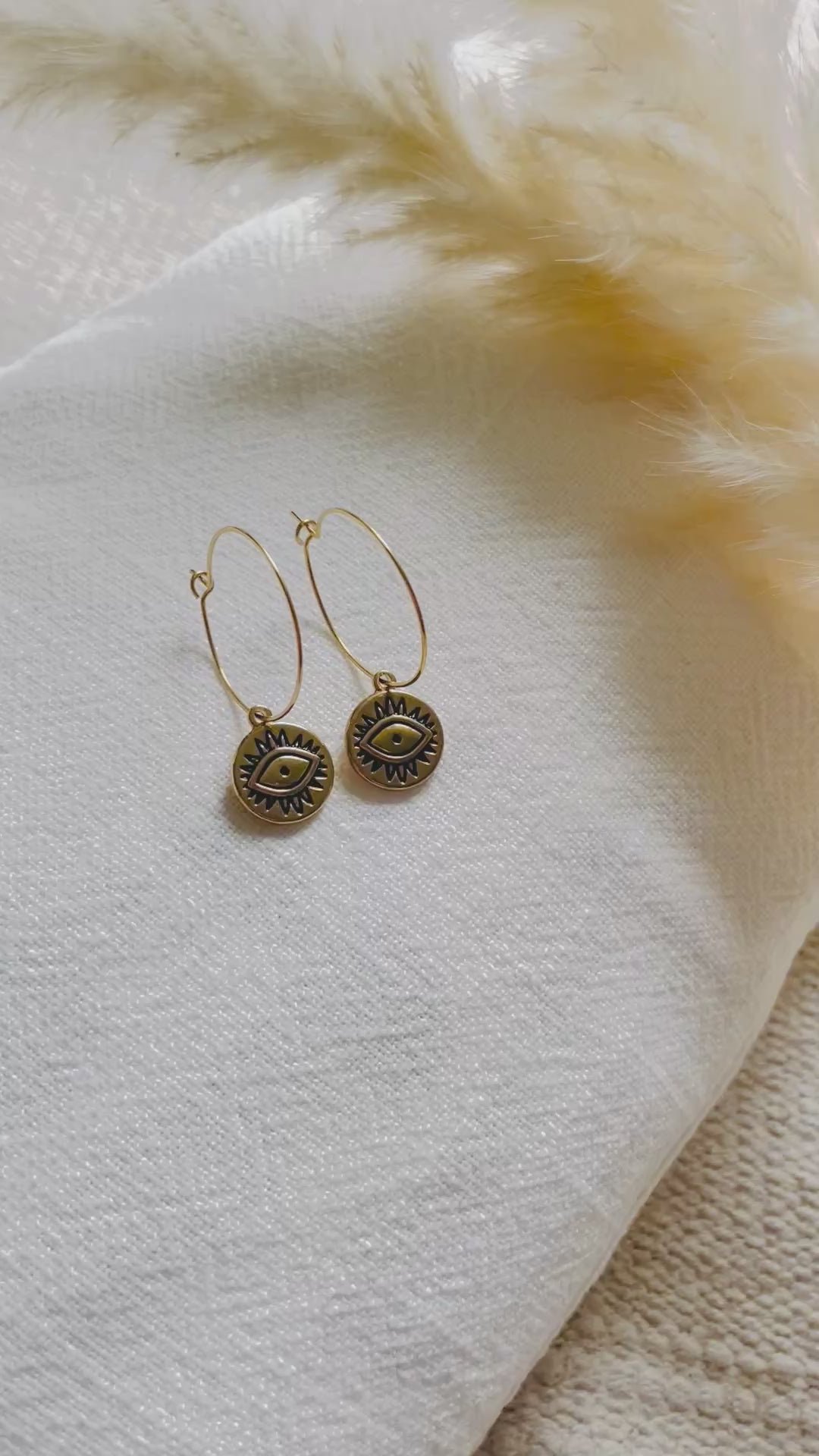 Apportez une touche de mystère et de style à votre look avec ces créoles élégantes, agrémentées de petites breloques en forme d’œil. Le détail de l’œil apporte une note originale et protectrice, idéale pour celles qui aiment les accessoires à la fois tendance et symboliques.