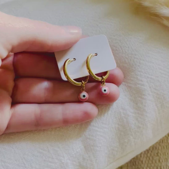 Ces créoles en acier inoxydable sont sublimées par un pendentif œil rose, symbole de protection et de douceur. La teinte subtile du rose apporte une touche féminine et moderne, tandis que l’acier brillant confère élégance et résistance.