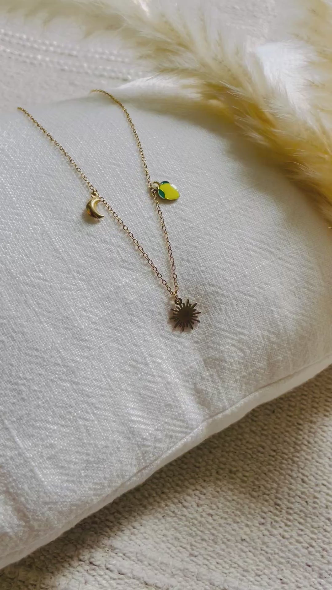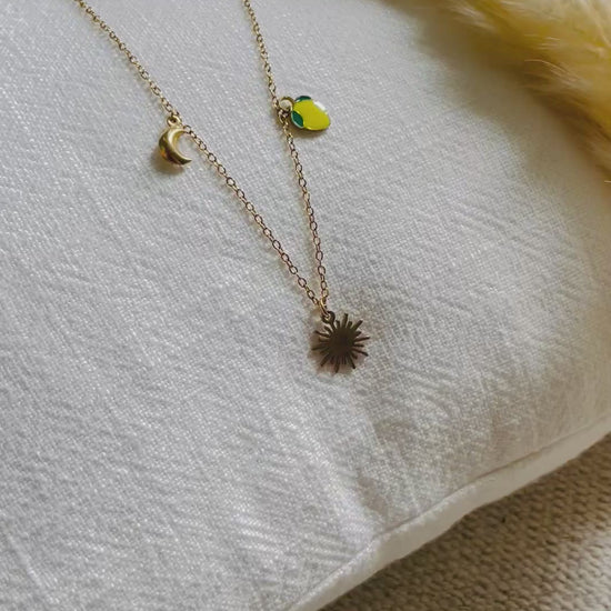 Collier 45 cm avec breloques soleil, citron et lune