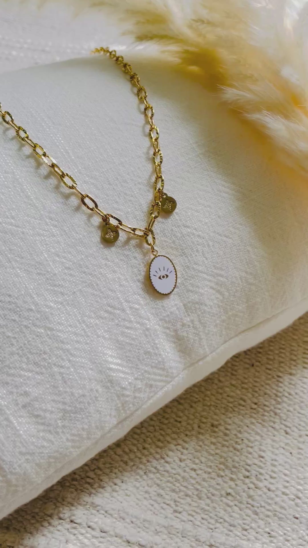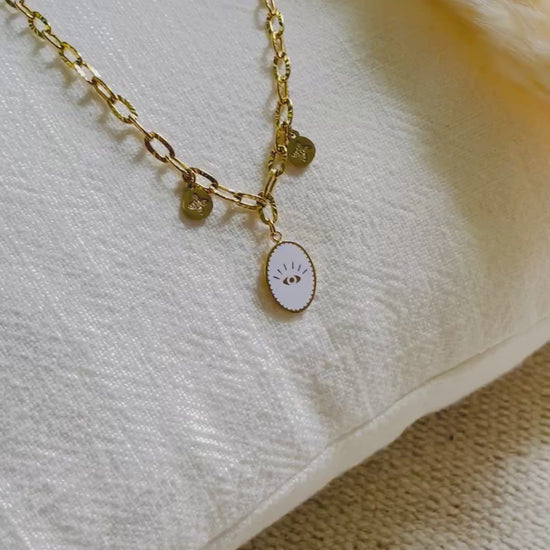Collier Chaîne Épaisse avec Pendentif Œil Blanc – Protection et Style